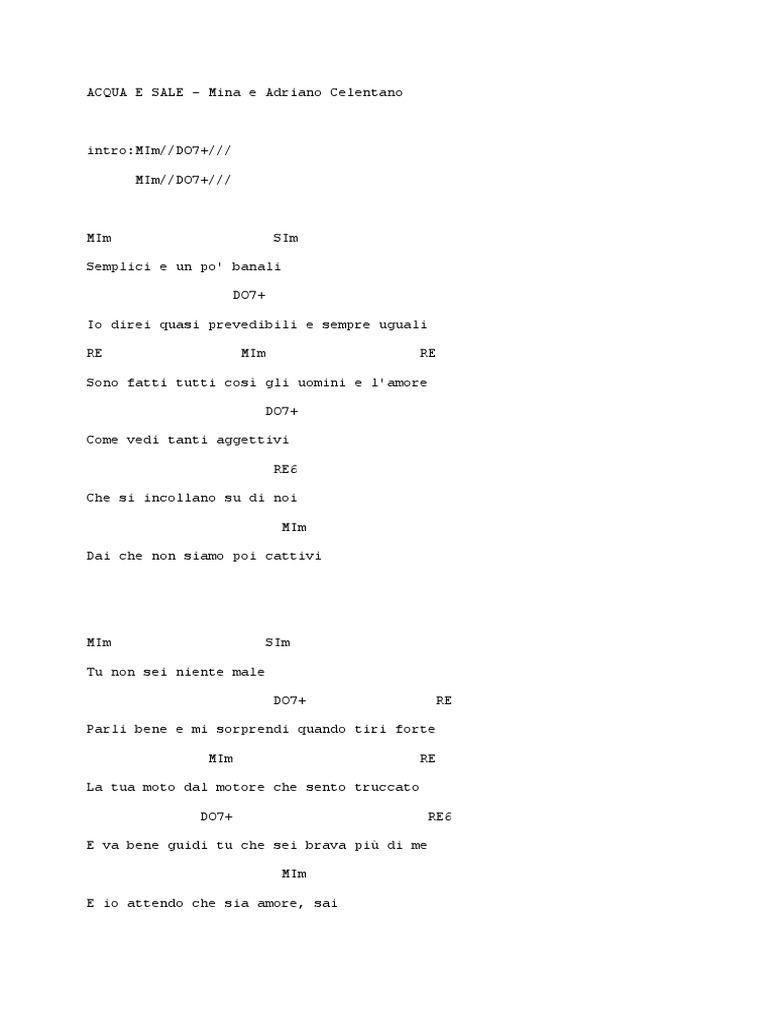 ACQUA E SALE Accordi 100 Corretti Adriano Celentano Mina PDF